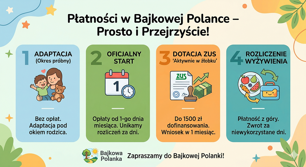 Płatności za żłobek bez tajemnic – Cennik i Dotacje | Bajkowa Polanka